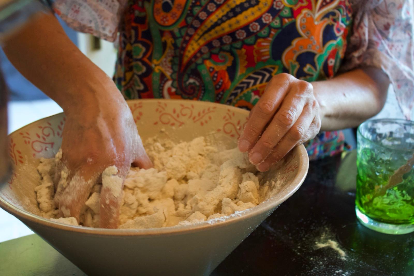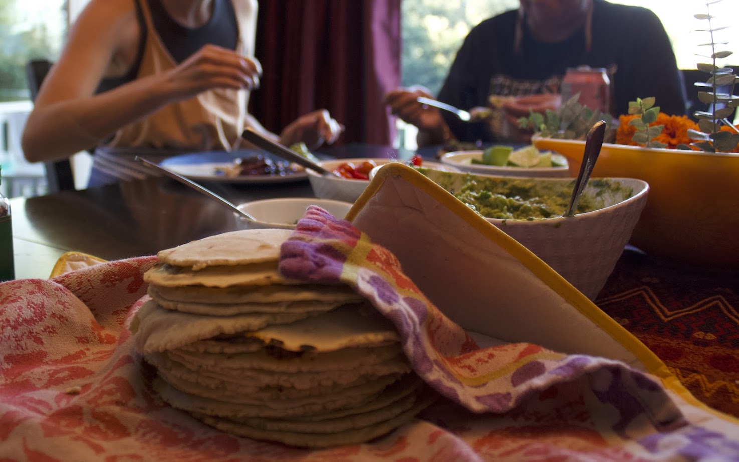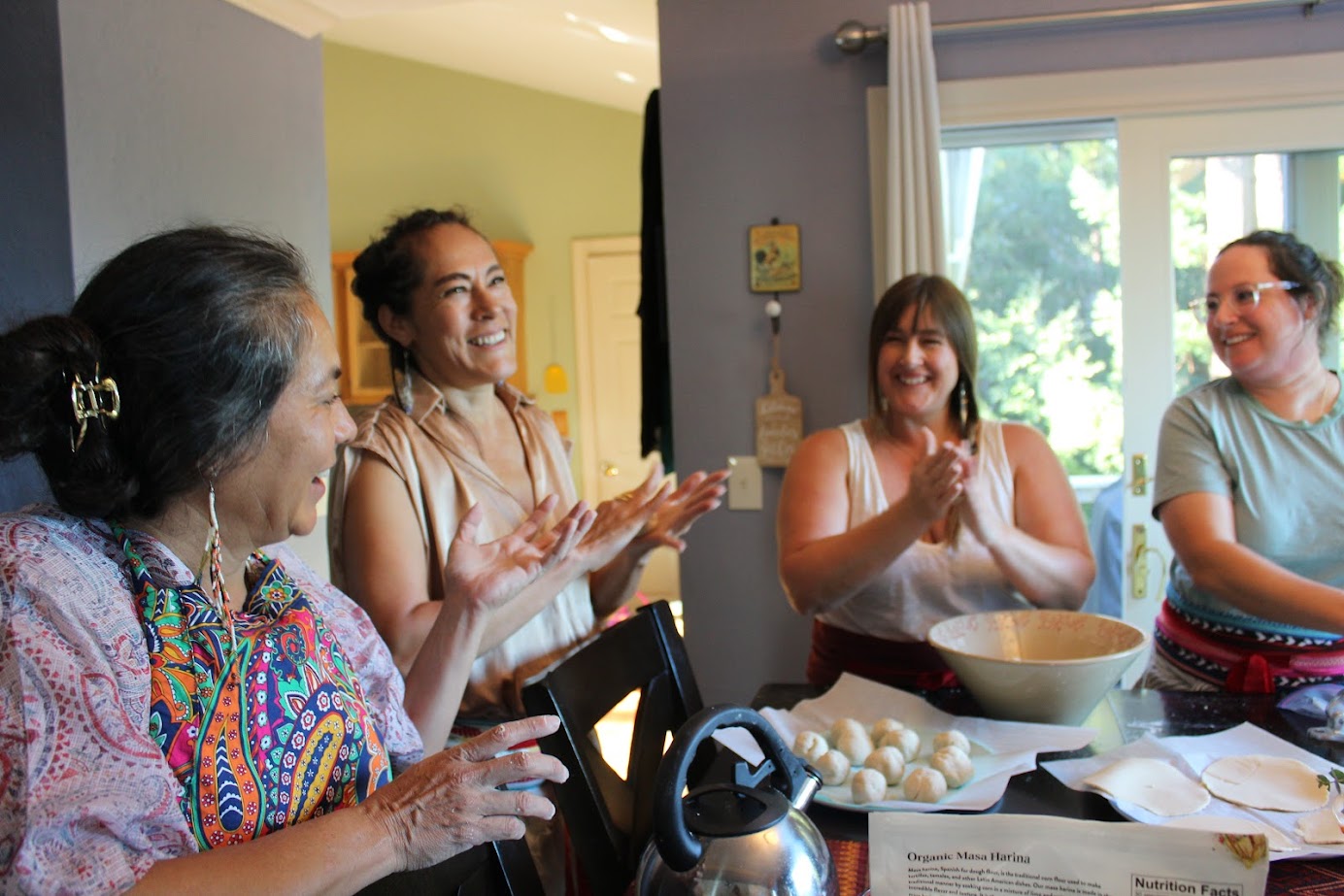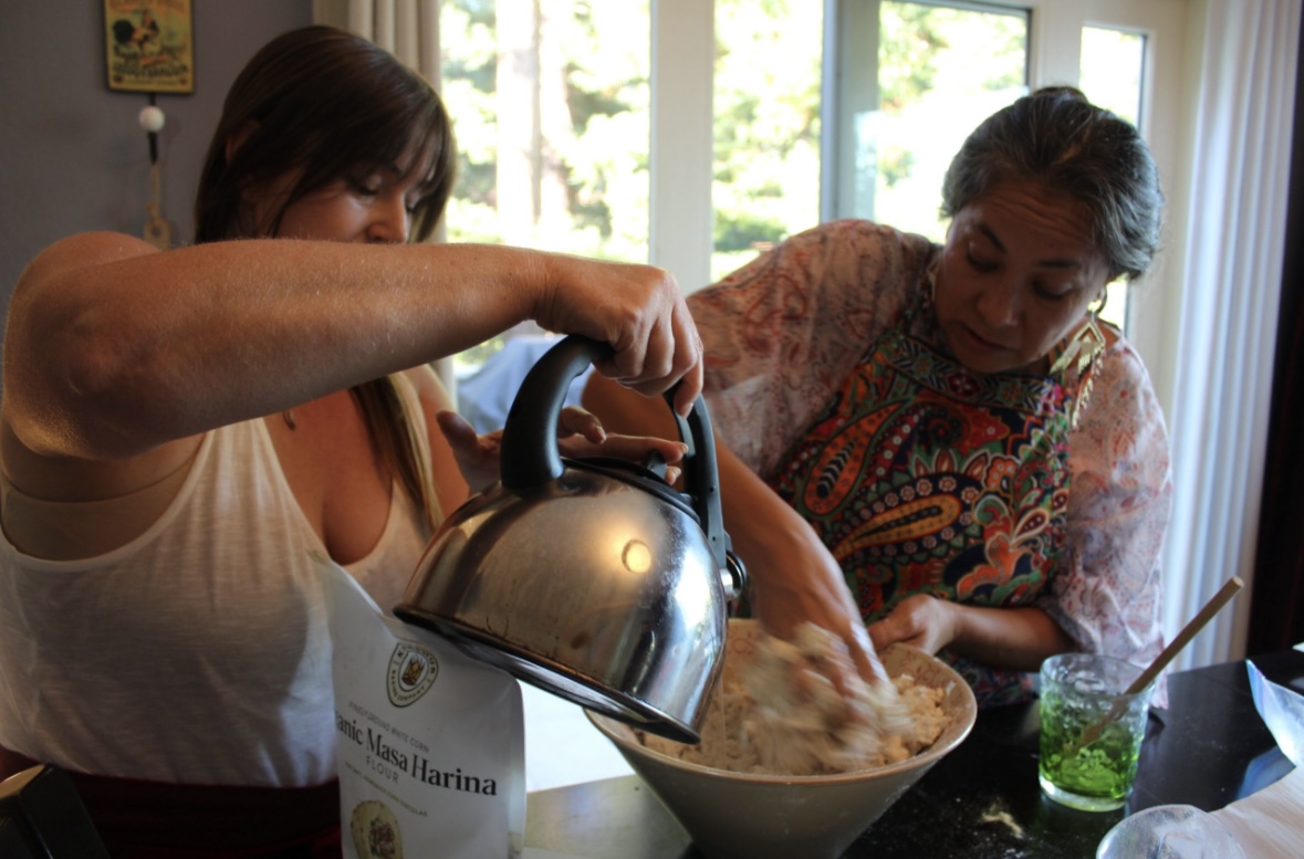 Food Medicine Workshop: making tortillas by hand, guacamole and fish tacos together in the kitchen.